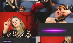 Sexy Stewardess Trampling and Spitting on a Human Carpet