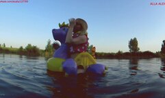 Alla is a hot rider on a squeaky inflatable magic dragon on the lake!!!