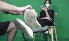 The East Goddess humiliated the teacher with dirty shoes and beautiful feet, licking and sucking her toes!