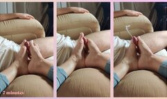 POV FOOTJOB on sofa - white pedicure toes milk a big cumshot dripping all over feet and soles!